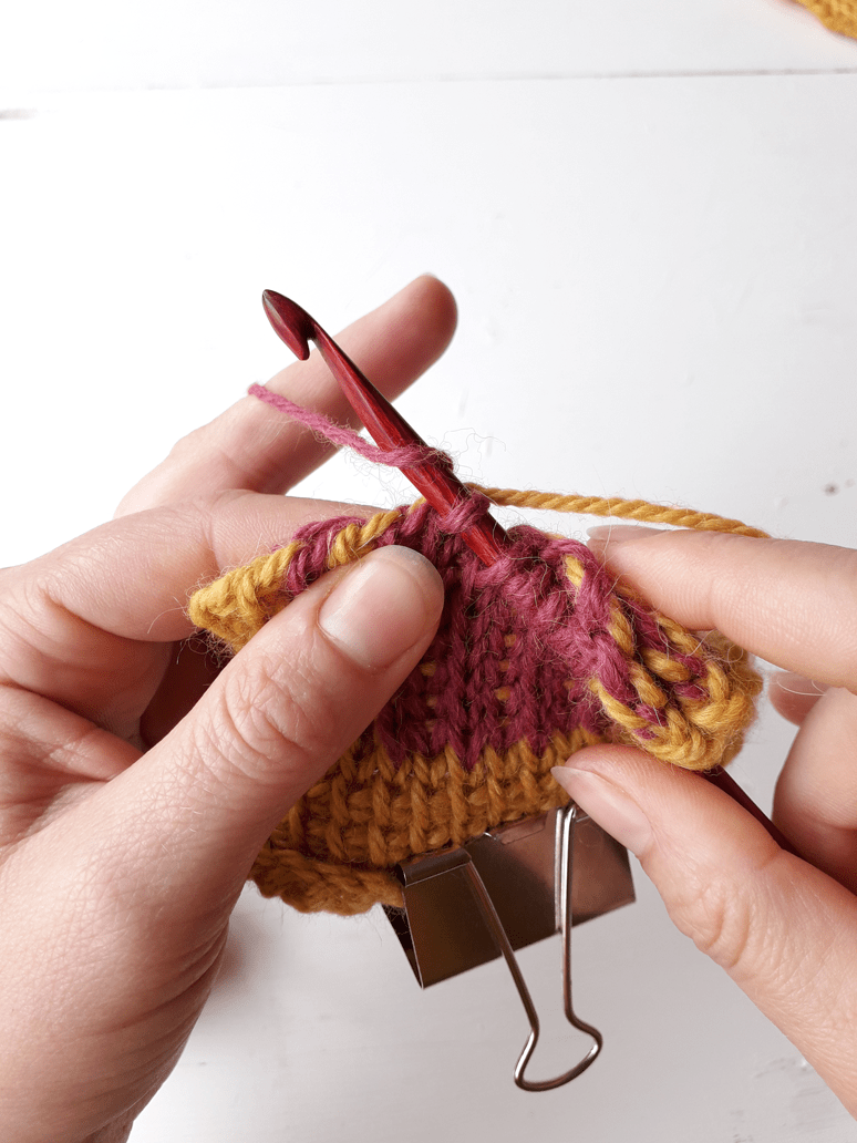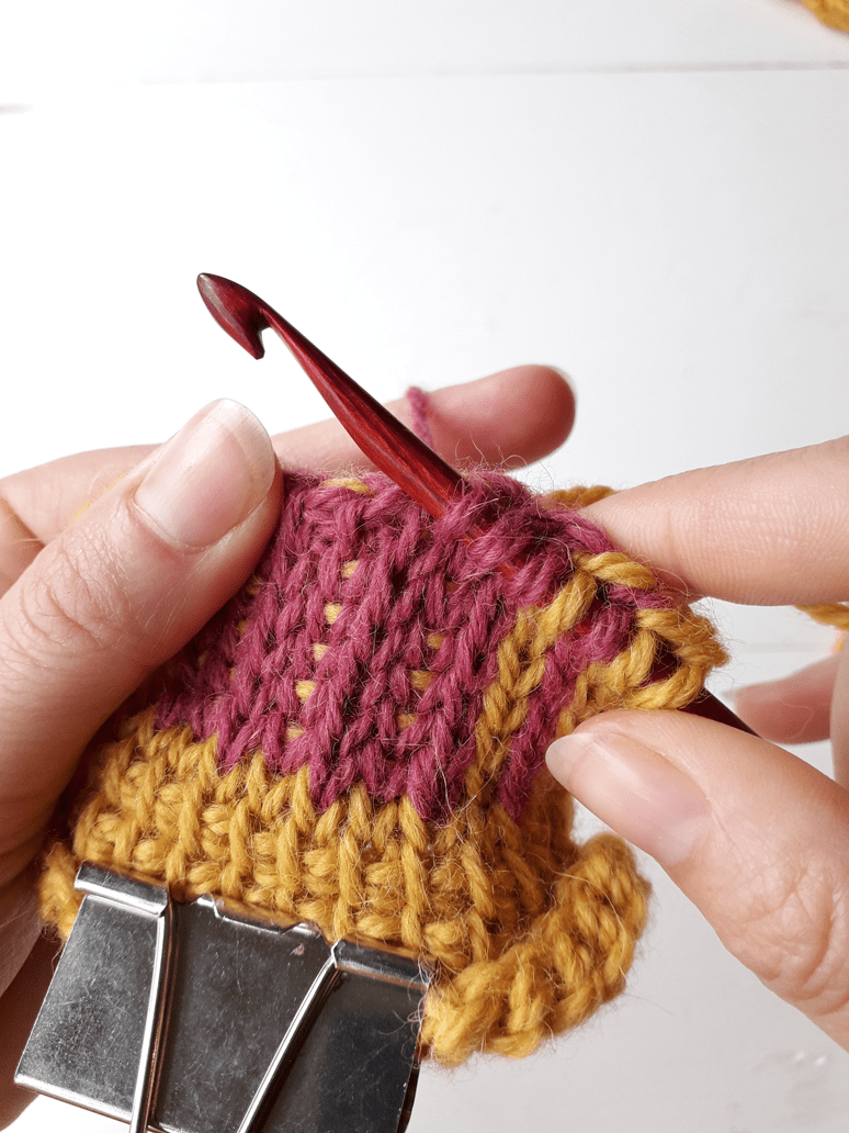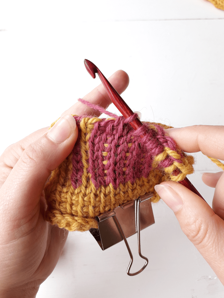 - I started with 15 chains and worked a few rows of 13 TSS before I got stuck into the stranded colourwork TKS section