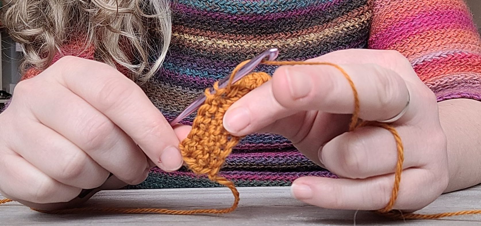 They arrived at my studio, and for the first little while, all seemed normal. They were all beginners, so they all struggled with holding the hook, with managing their yarn, with making chains. But while the two sisters worked and progressed steadily, their mother didn’t.